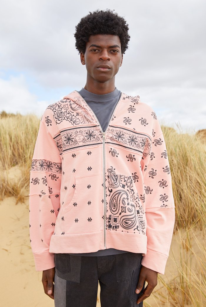 Pink Paisley Cut & Sew Zip Up Hoodie