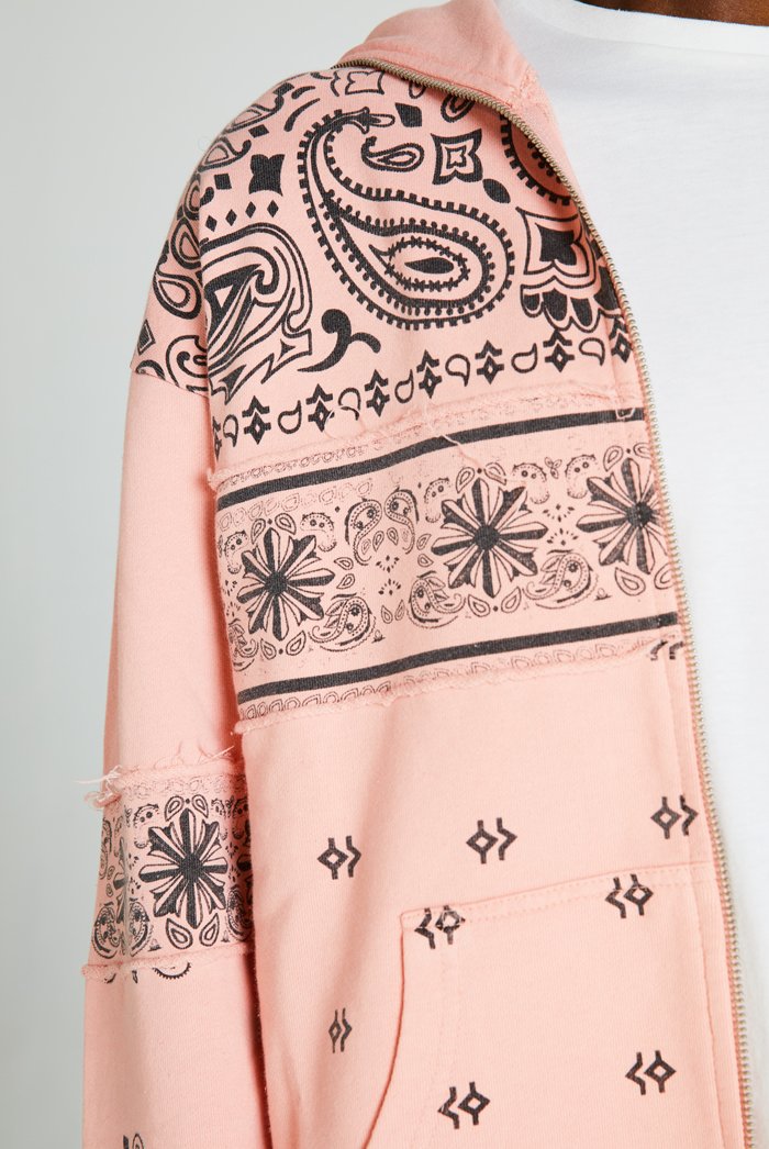 %text-1-start%Pink Paisley Cut & Sew Zip Up Hoodie