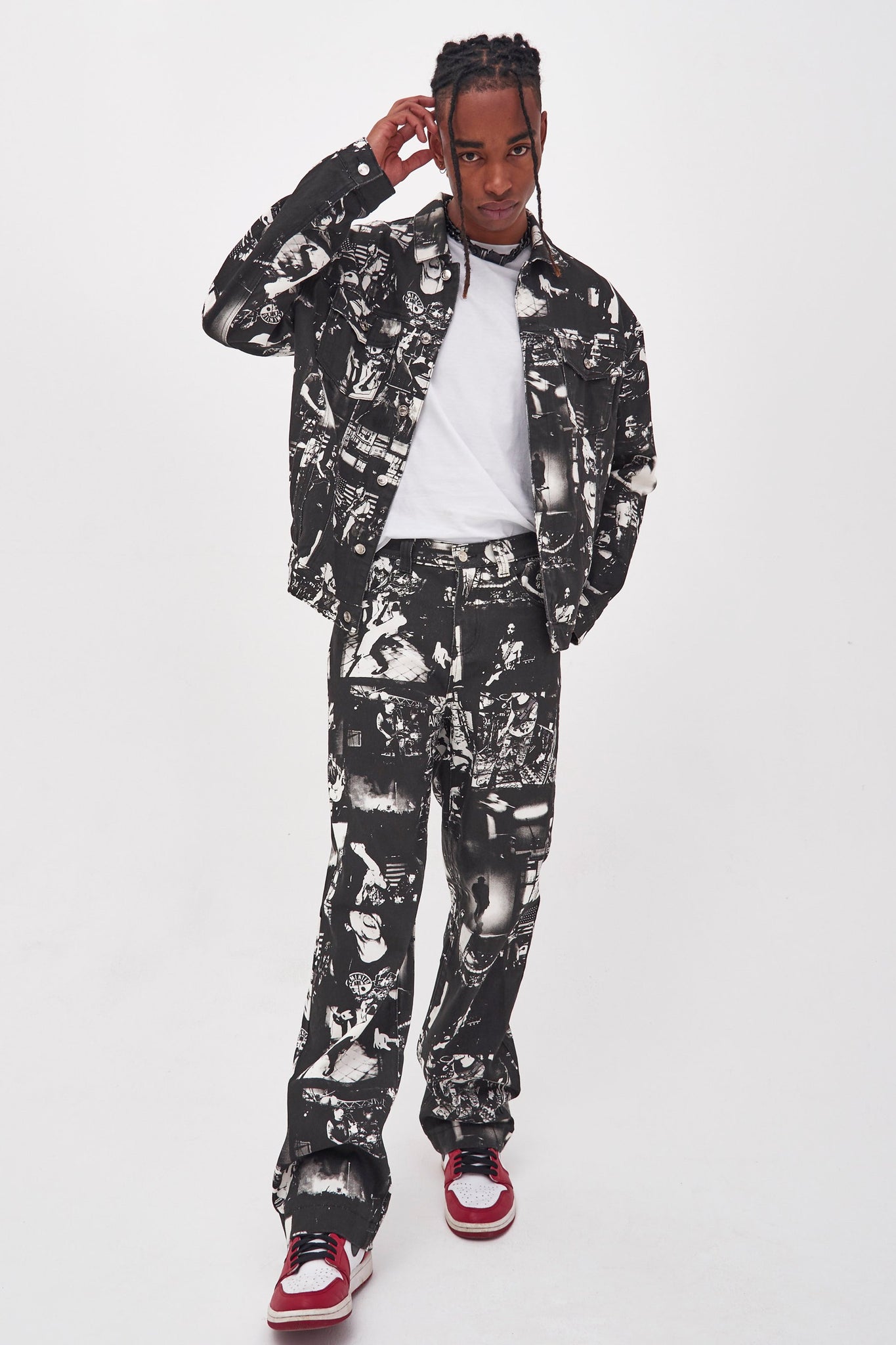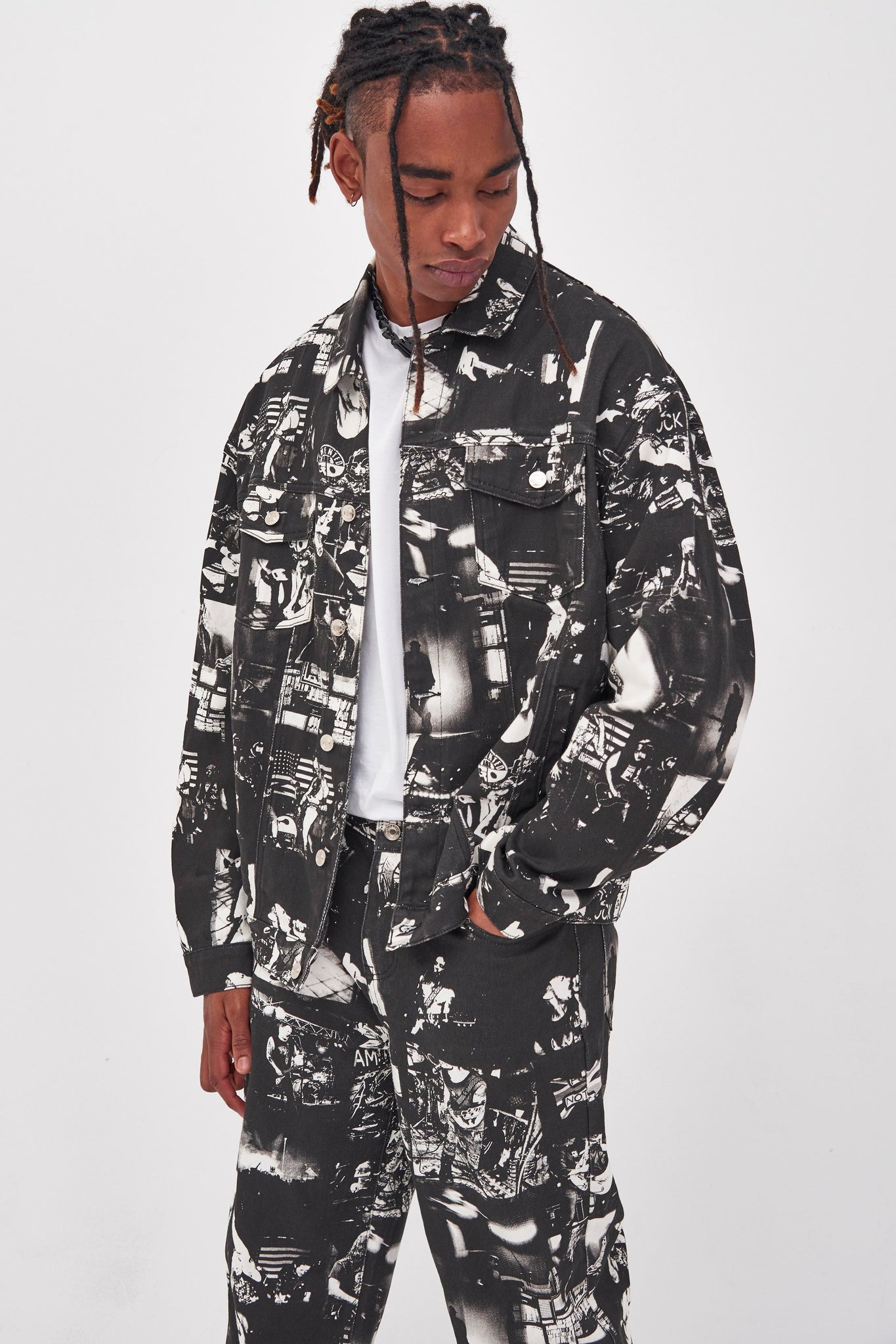 %text-1-start% Punk Rock Photograph Print Denim Jacket