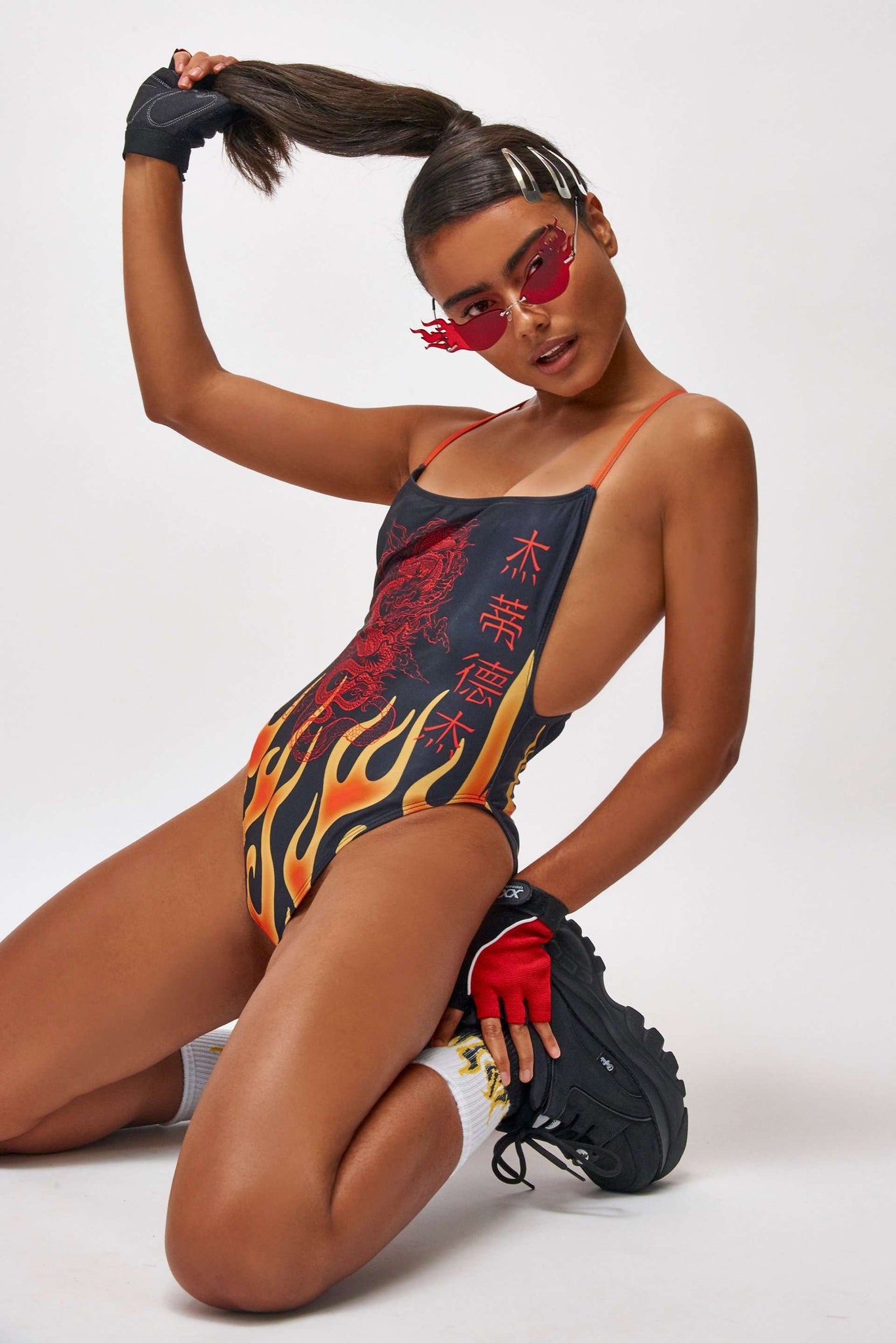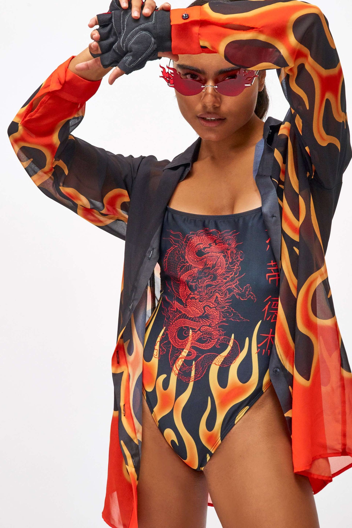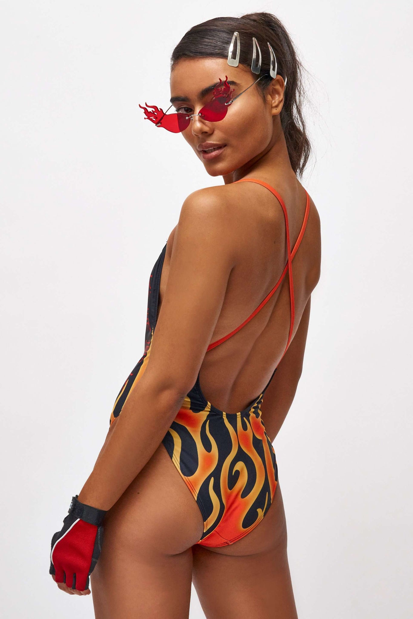 %text-1-start%Flames for days! Upgrade your swimwear this season rocking our red flame print square neck swimuit!