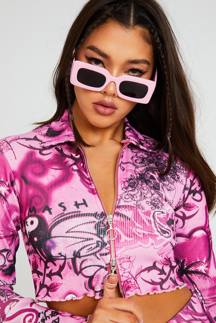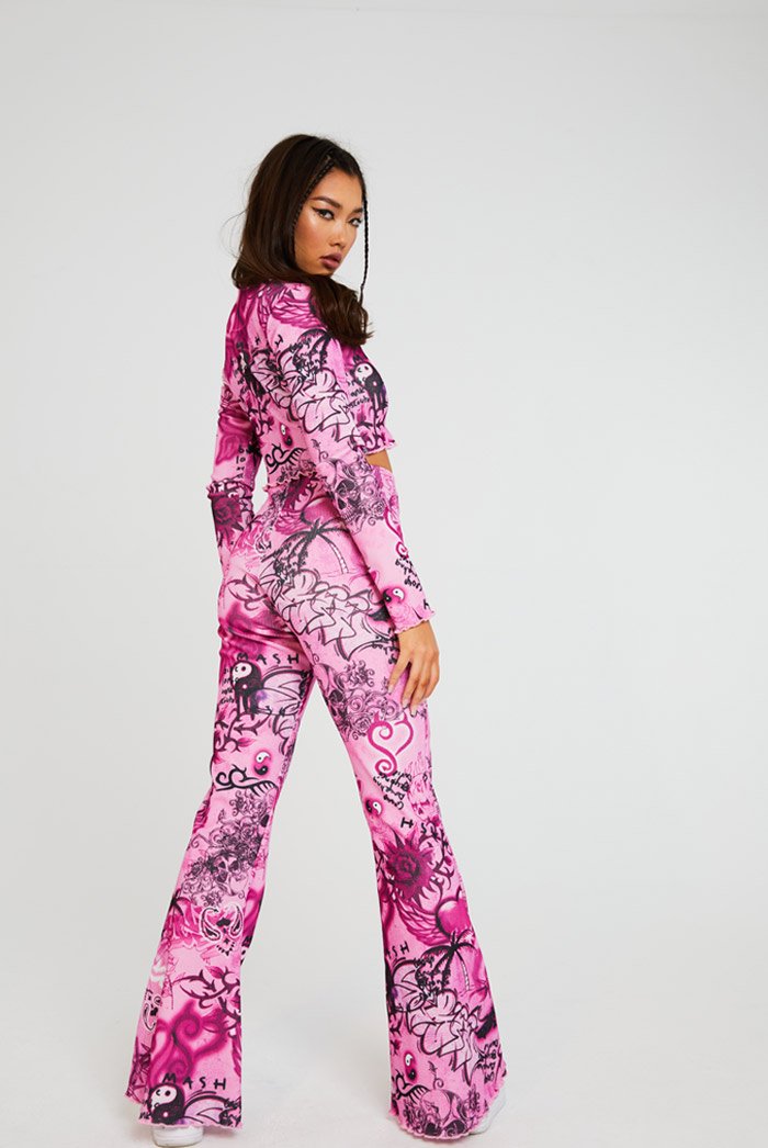 %text-1-start%Stand out this season rocking our scribble print zip up rib cardigan, pair with the matching flares for a kick-ass co-ord!