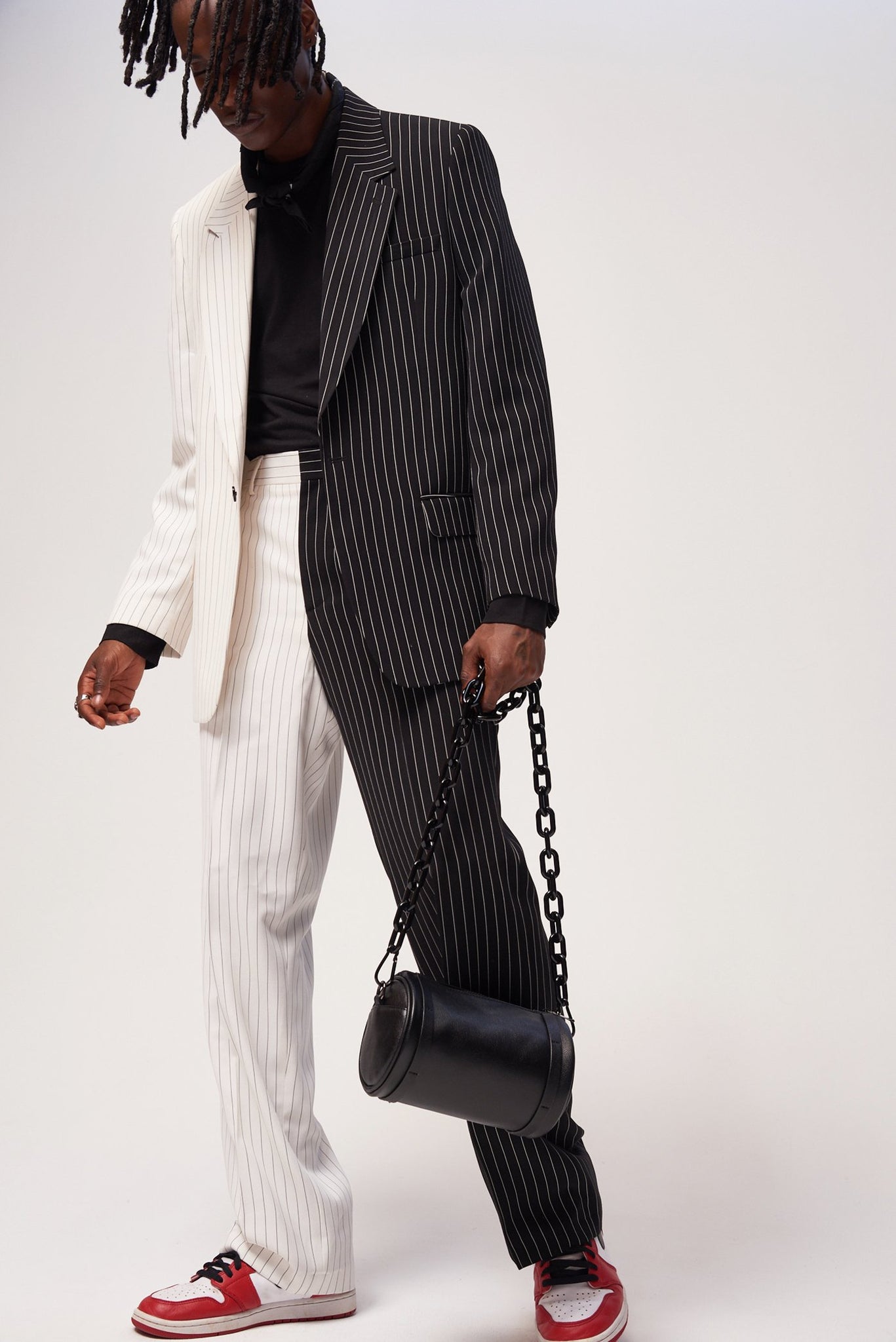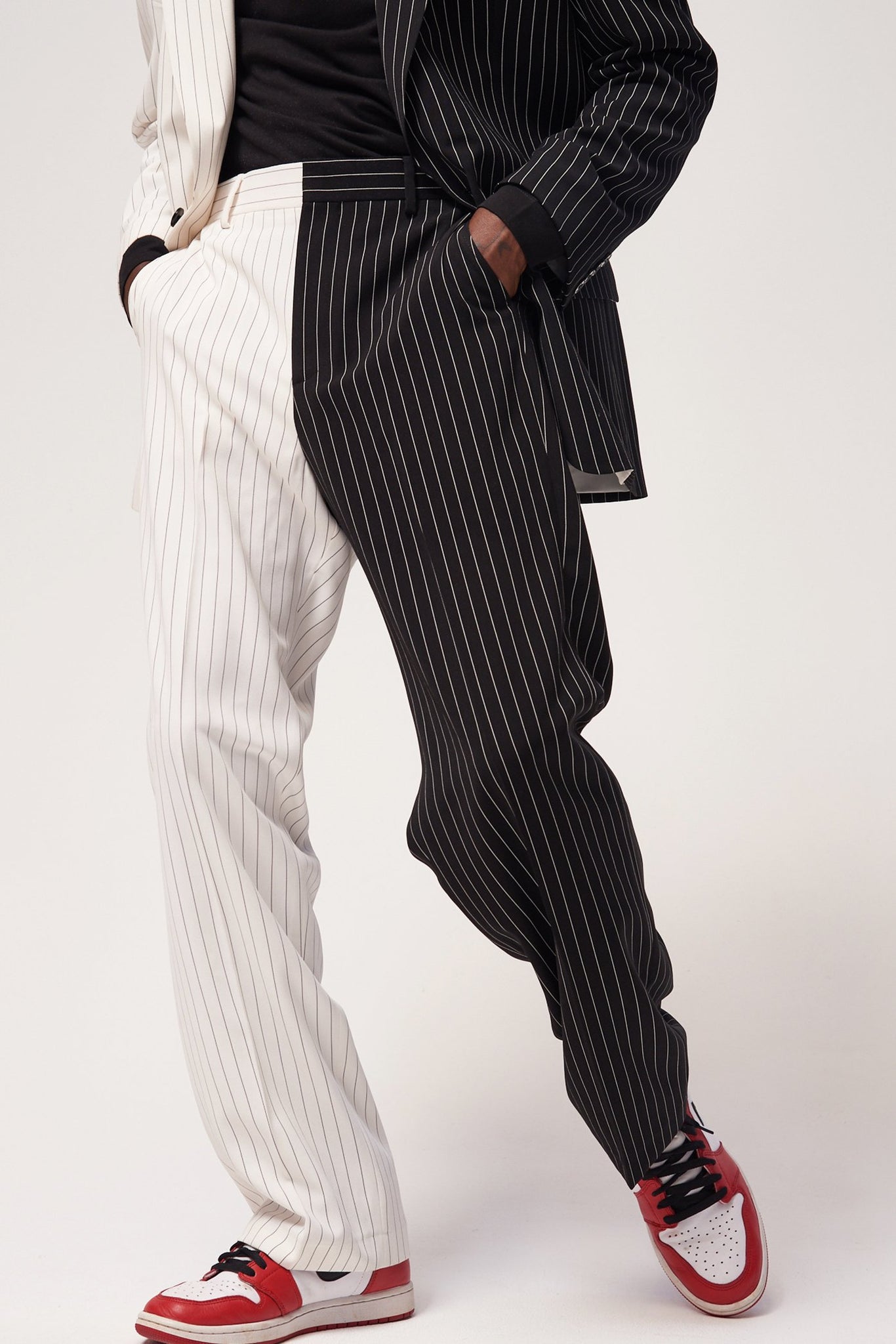 %text-1-start%Spliced Black & White Pinstripe Suit Trousers