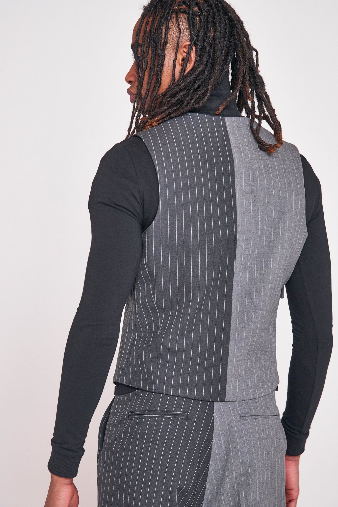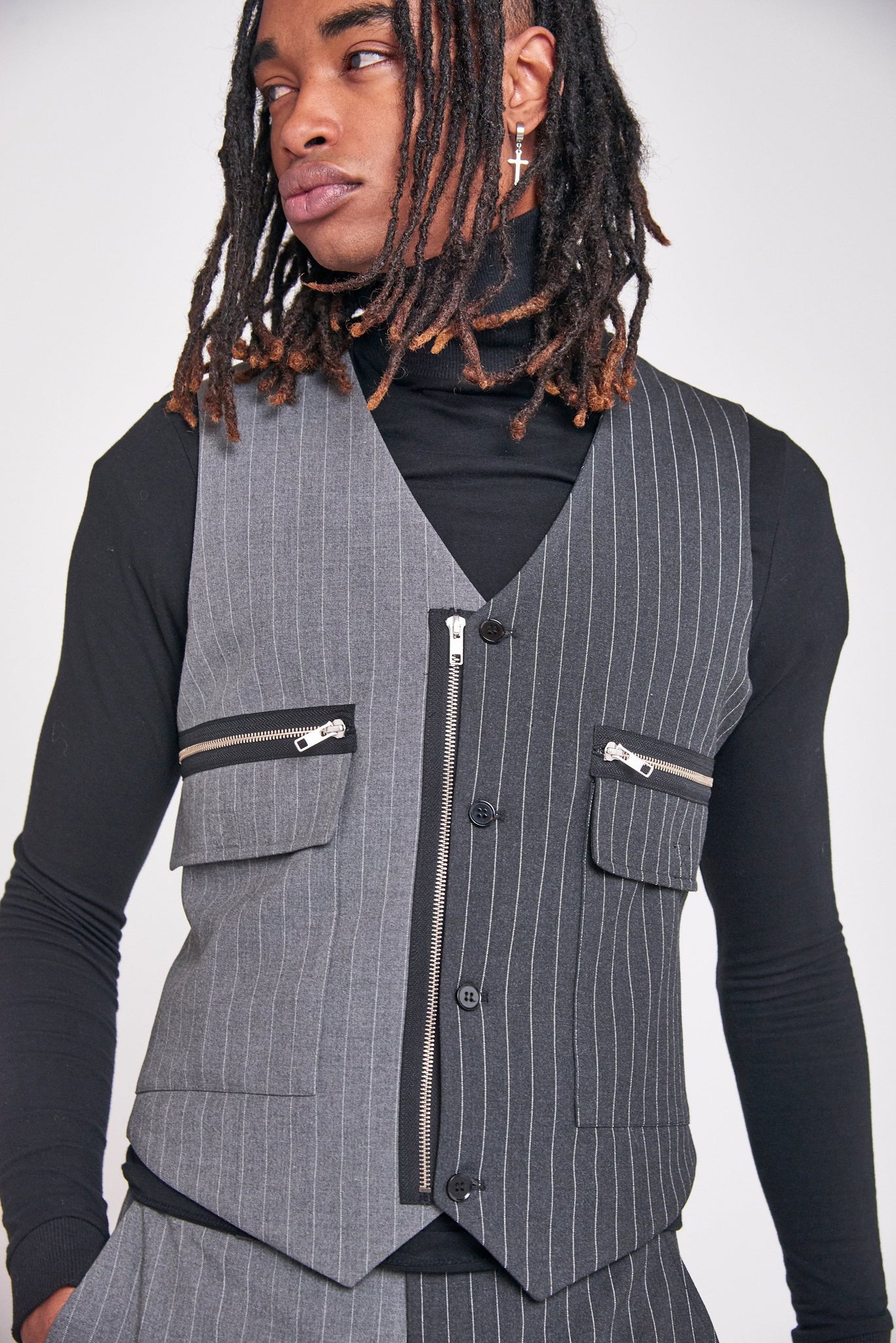 %text-1-start%Spliced Grey Pinstripe Utility Waistcoat