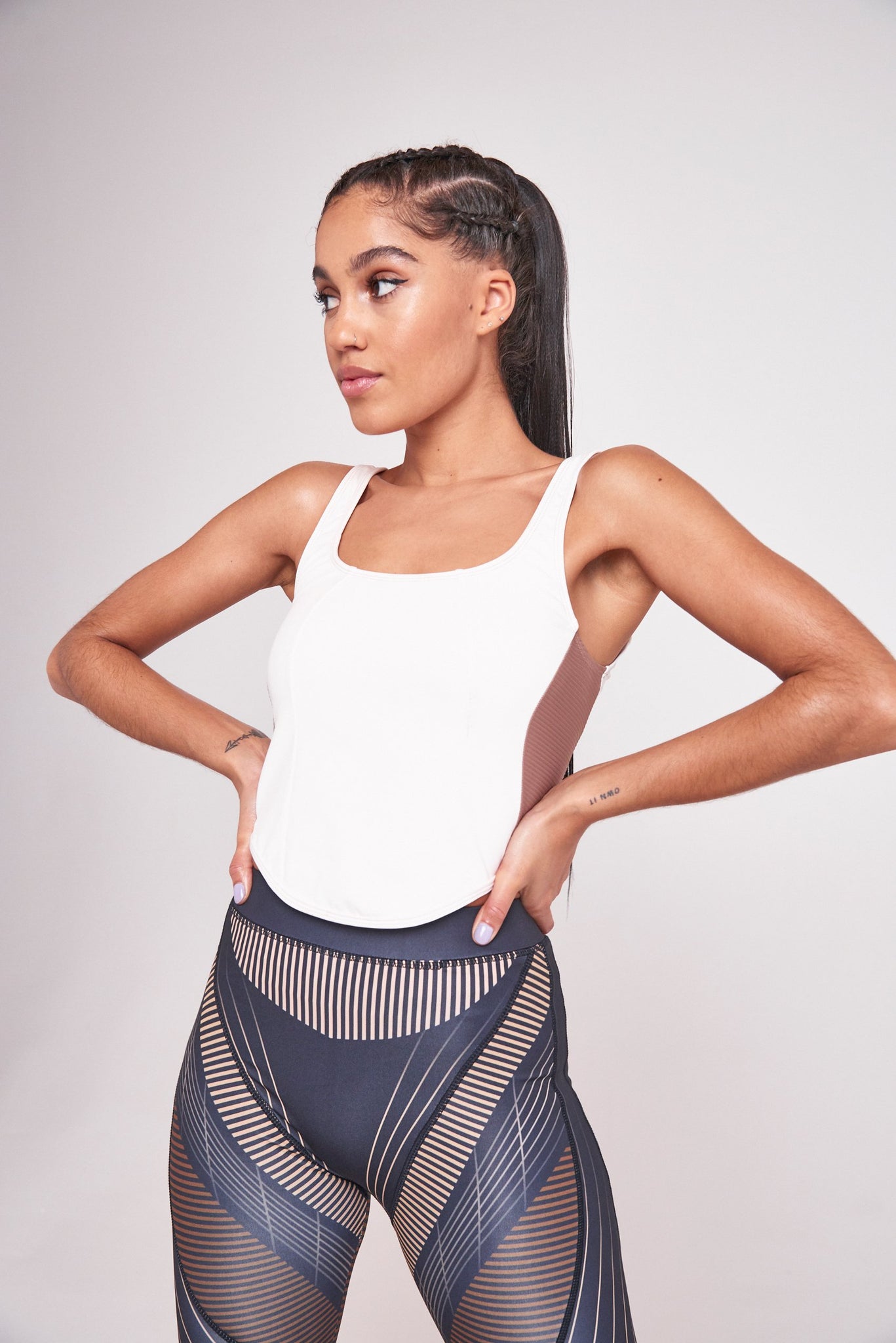 %text-1-start% Upgrade your gym wardrobe this season rocking our super cute square neck corset top with rib panels!