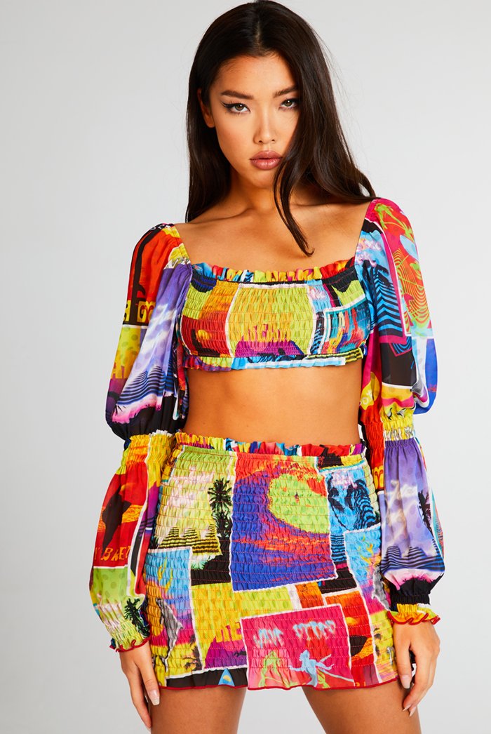 %text-1-start% The co-ord of your dreams had just landed! Rock our Surf Poster Print Organza Skirt this season & pair with the matching top for a kick-ass co-ord!