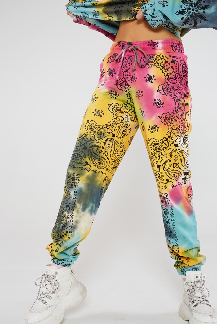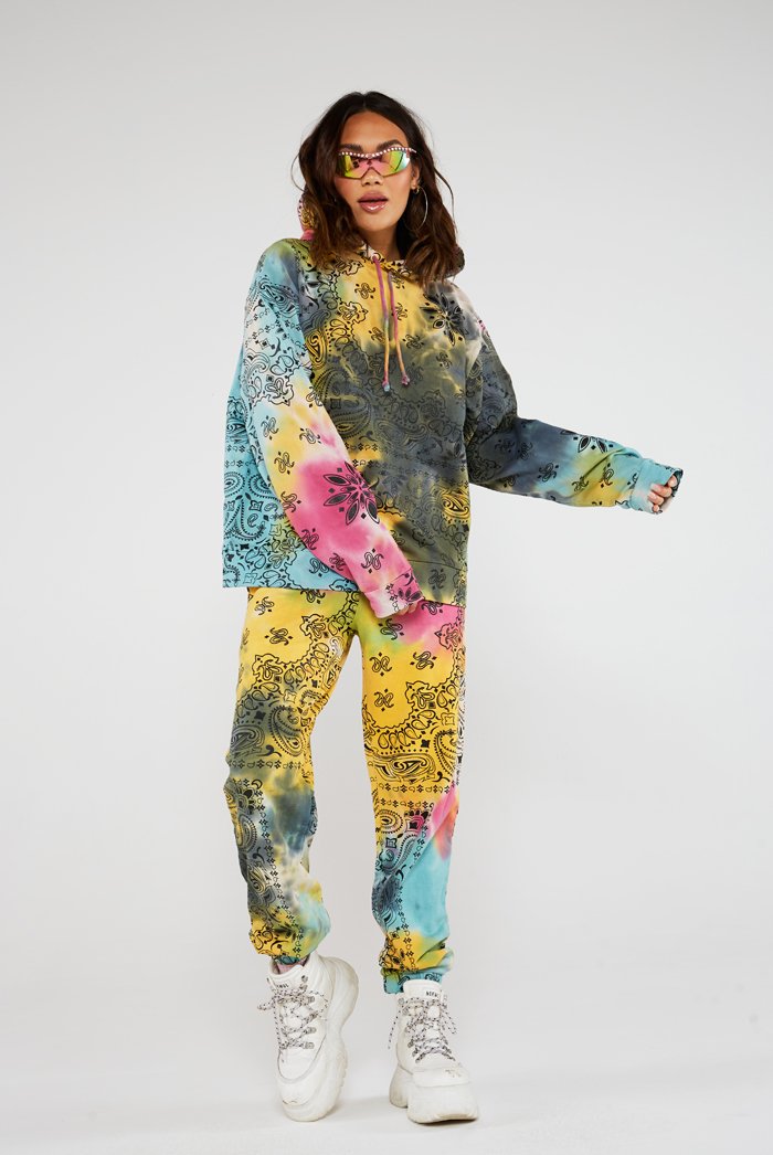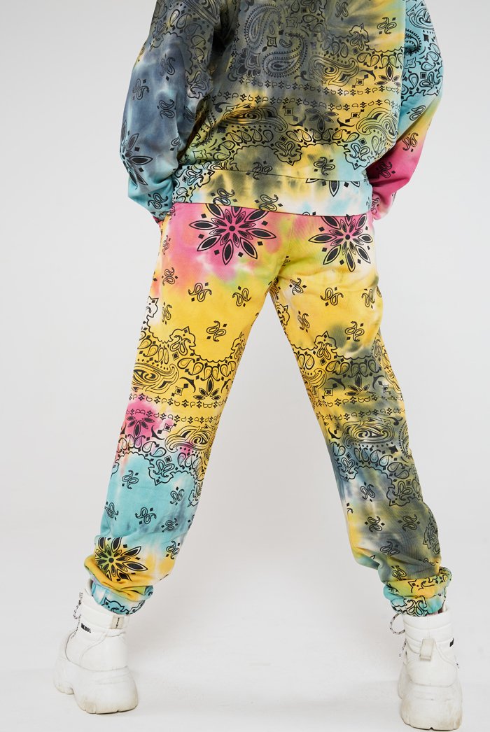 %text-1-start% Stay comfy in style rocking our tie dye paisley print joggers, pair with the matching hoodie for a kick-ass co-ord!