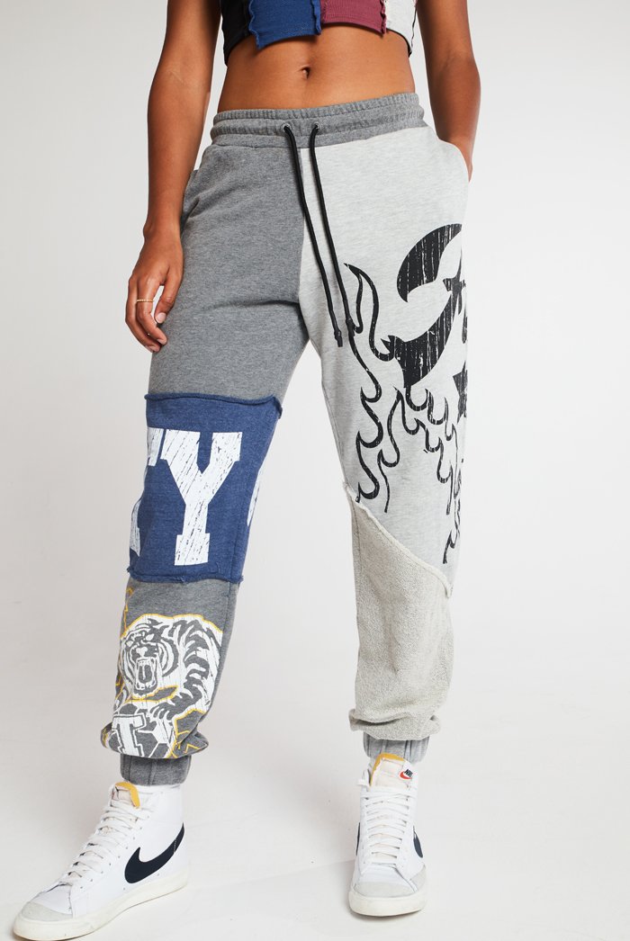 %text-1-start%Stay comfy in style this season rocking our varsity print patchwork joggers!